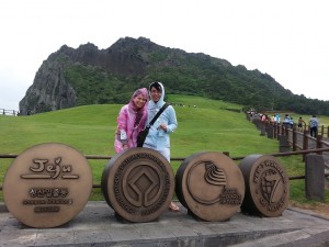 The first place we went to was the Sunset Peak, a very famous natural landmark on Jeju Island..The thing is…BE PREPARED for RAIN! Umbrella’s don’t really work….. so buy a raincoat.. and wear sports shoes..
